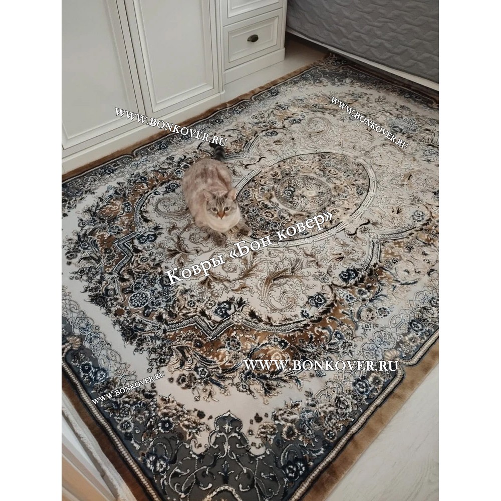 21.04.2022 Читать полный отзывДолго искали смотрели на разных сайтах , в итоге ваш ковер приглянулся больше всего . Доставили в рулоне на следующий день , оплатили при получении . Идеальный вариант , цвет темно синий с переливом - рисунок очень выйгрышно смотрится !