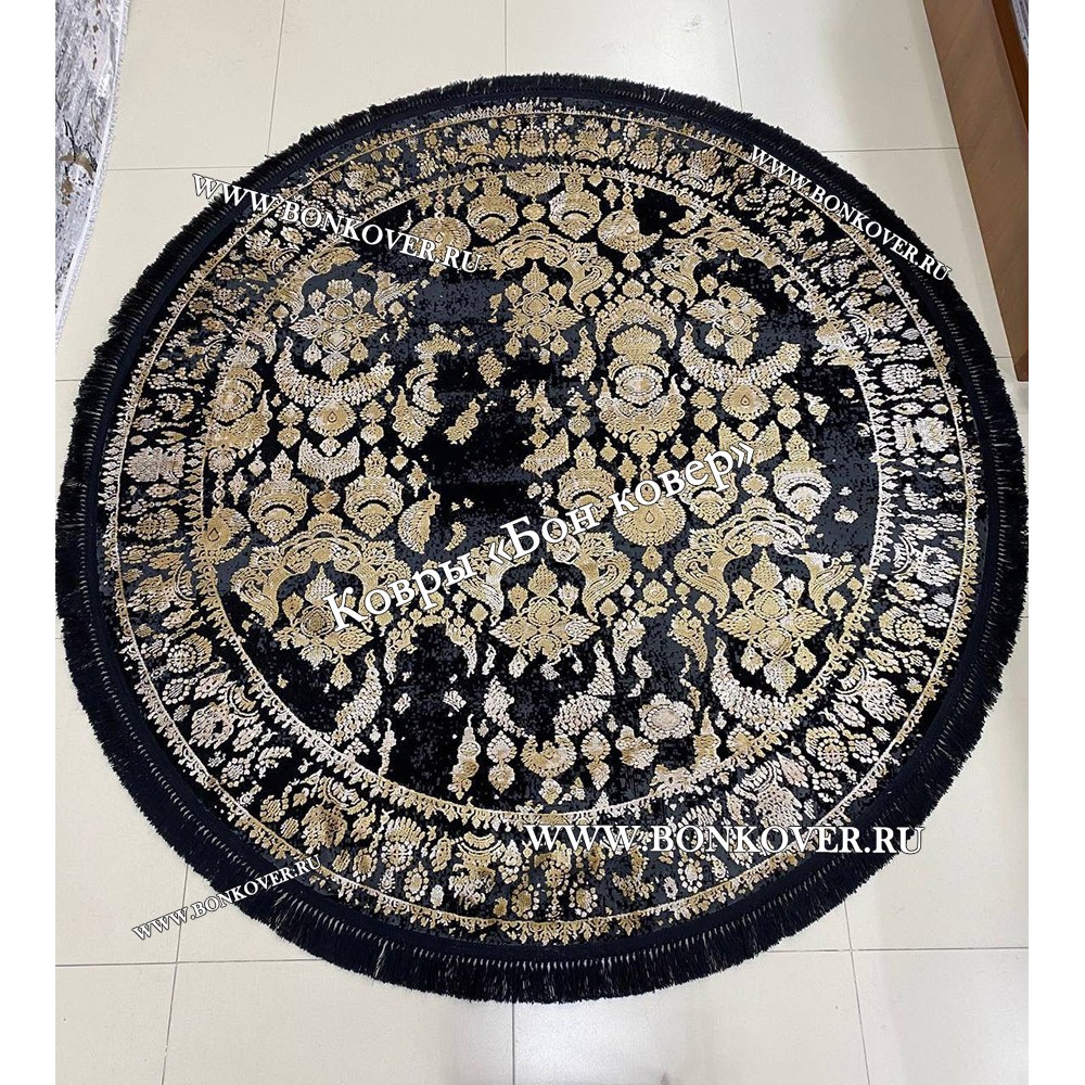 Современный Турецкий Ковер Дизайн 30665 Черный с Золотым Круг станет шикарным преображением жилого помещения, подчеркивая высокий статус хозяина.